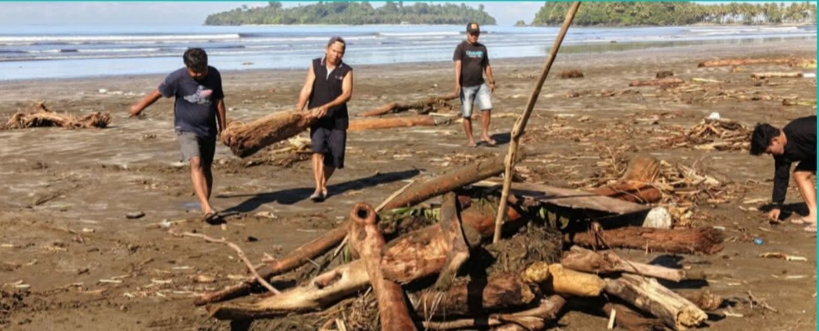 Sukarelawan membersihkan pantai dari puing-puing pasca gelombang pasang, sebagai bagian dari mitigasi banjir rob di pesisir Sumbar (Foto Dok. DLH Padang).