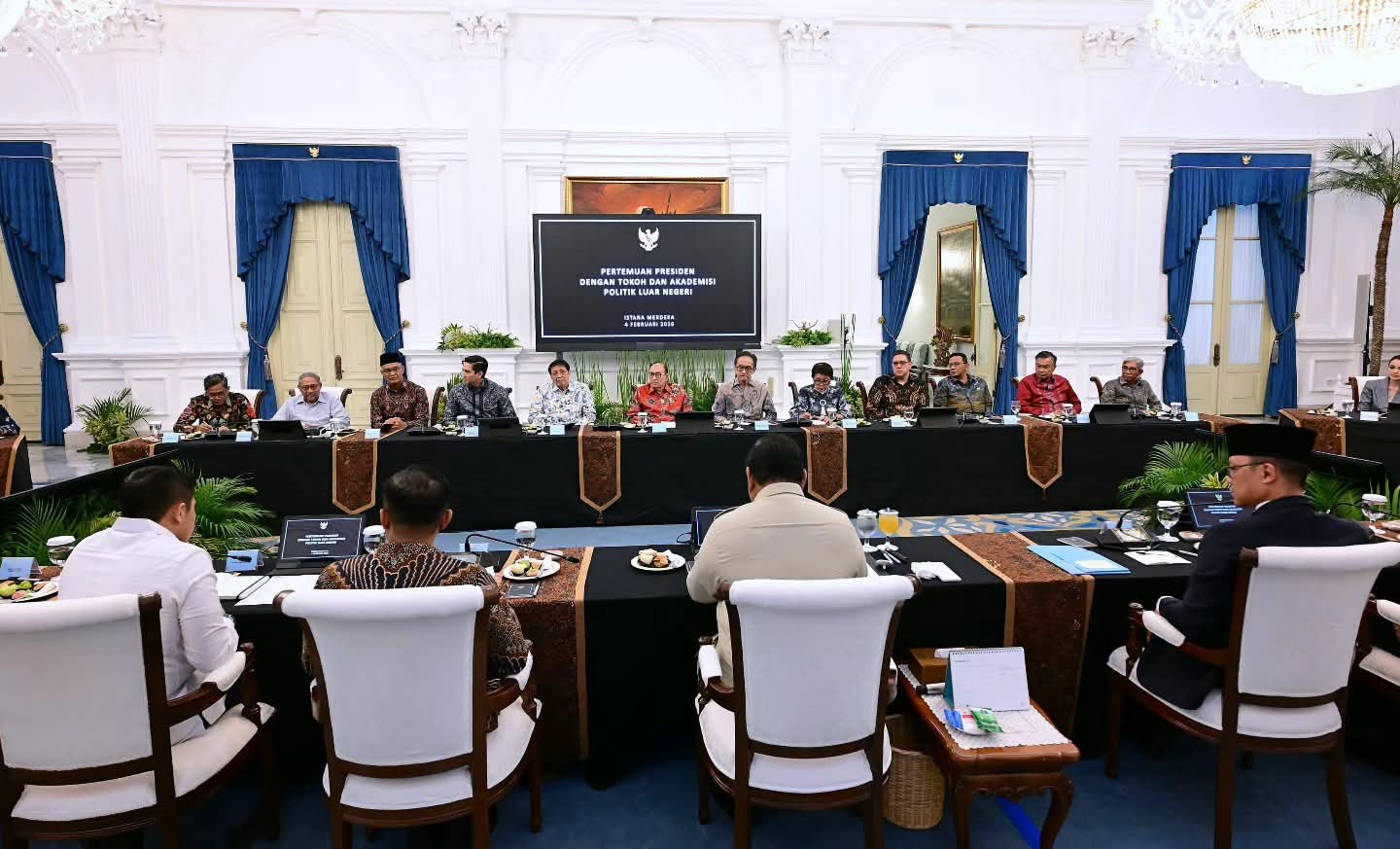 Presiden Prabowo Subianto berdiskusi dengan tokoh dan akademisi politik luar negeri di Istana Merdeka, Jakarta, Rabu, 4 Februari 2026 (Foto Dok. Setkab).