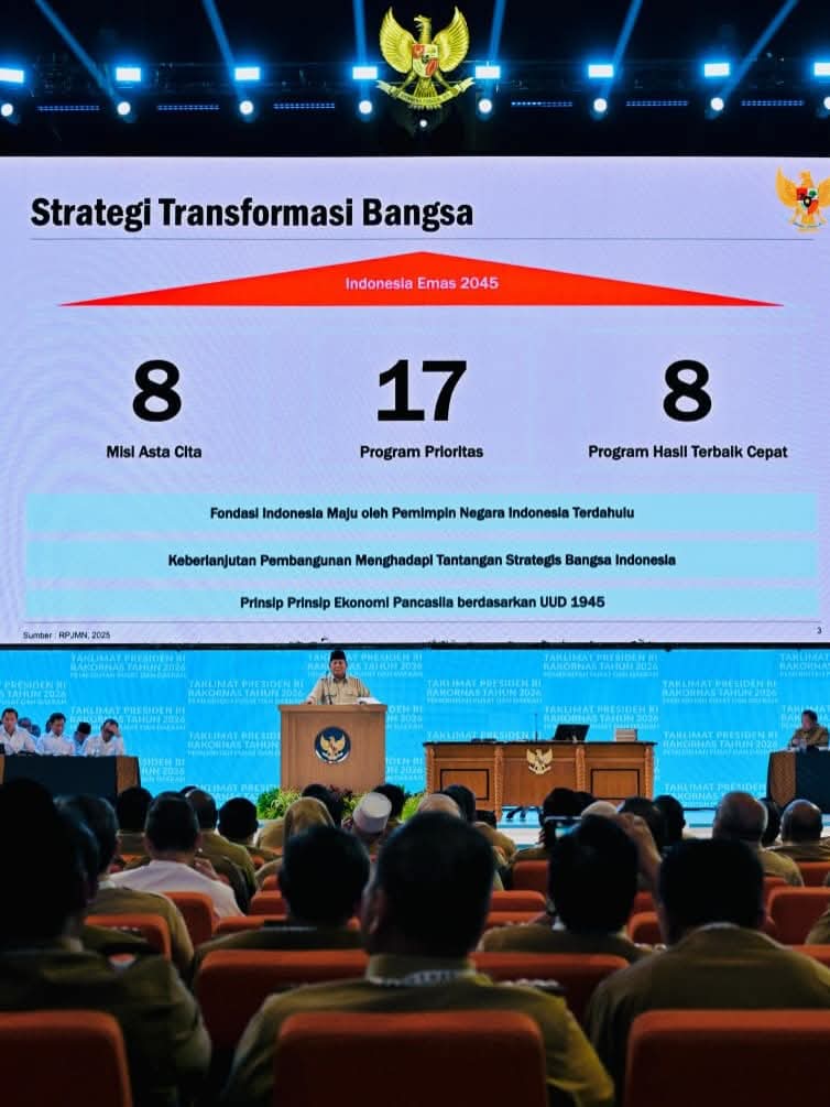 Bogor (Jawa Barat). MINAKONEWS – Presiden Prabowo Subianto menegaskan bahwa Indonesia masih menghadapi tantangan besar, terutama dalam pengentasan kemiskinan dan peningkatan kesejahteraan rakyat, dalam taklimatnya pada Rapat Koordinasi Nasional (Rakornas) Pemerintah Pusat dan Daerah Tahun 2026 di Sentul International Convention Center (SICC), Kabupaten Bogor, Senin (02/02/2026).