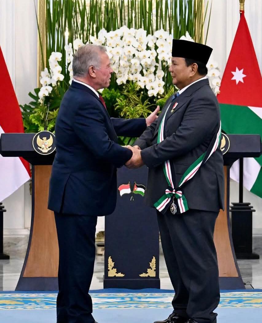 Jakarta (DKI). MINAKONEWS.COM – Presiden Republik Indonesia, Prabowo Subianto, menerima penghargaan bergengsi “The Bejewelled Grand Cordon of Al Nahda (Order of the Renaissance)” dari Raja Kerajaan Yordania Hasyimiah, Raja Abdullah II ibn Al Hussein, dalam kunjungan kenegaraannya ke Indonesia.