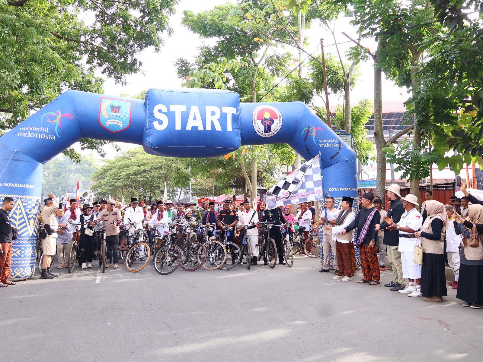 Ratusan orang berbusana tempo dulu mengayuh sepeda onthel melintasi Kampung Adat, rumah gadang, Masjid, taman kota, dan wisata unggulan.