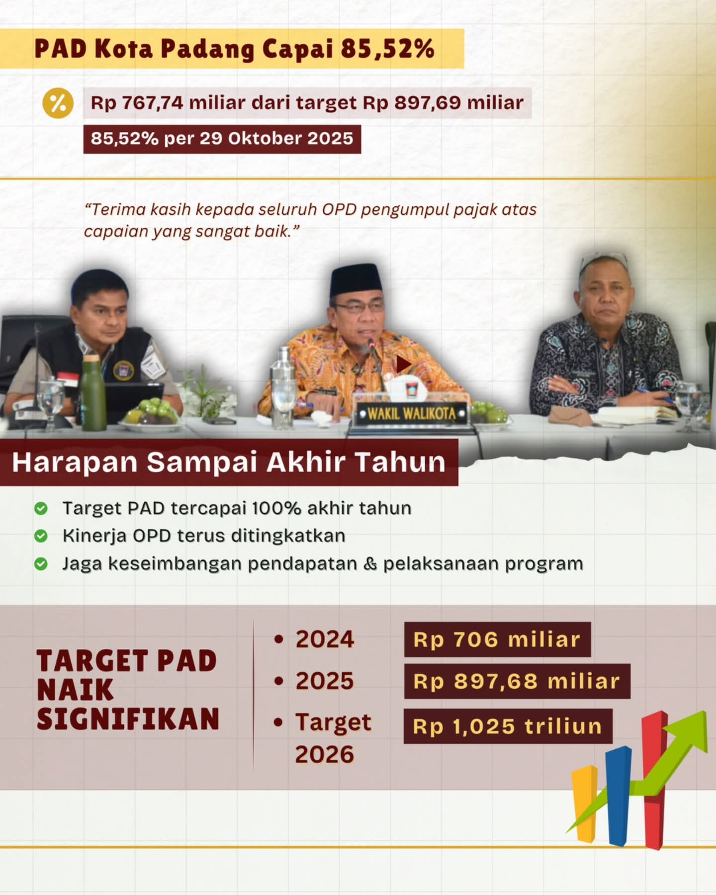 Wakil Wali Kota Padang, Maigus Nasir, memimpin Rapat Evaluasi PAD di Gedung Putih Rumah Dinas Wali Kota, Kamis (30/10/2025).(Infografik: Humas Pemko).