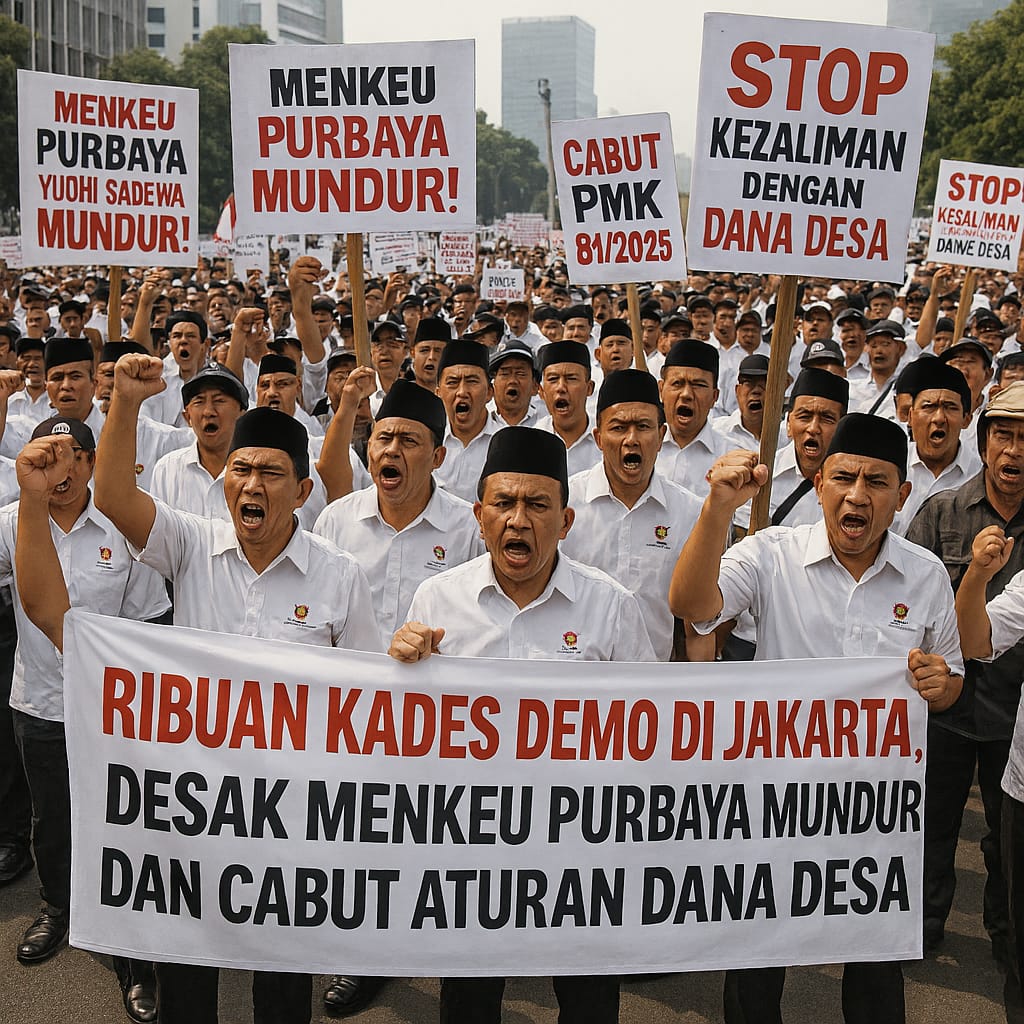 Ribuan kades turun ke jalan: desak Menkeu Purbaya mundur, Dana Desa dikembalikan ke hakikatnya (Potret Digital: WD).