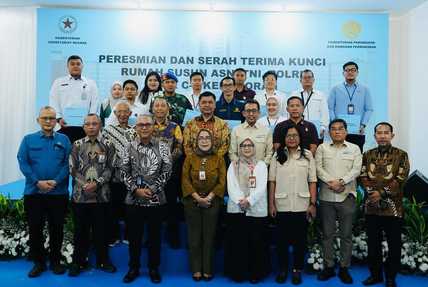 Jakarta (DKI Jakarta). MINAKONEWS.COM — Pemerintah melaksanakan peresmian dan serah terima kunci Rumah Susun Blok C-2 Kemayoran kepada para ASN, TNI, dan Polri pada Rabu (29/10). Acara ini dihadiri oleh Wakil Menteri Sekretaris Negara Juri Ardiantoro dan Sekretaris Jenderal Kementerian Perumahan dan Kawasan Permukiman (PKP), Didyk Choiroel.
