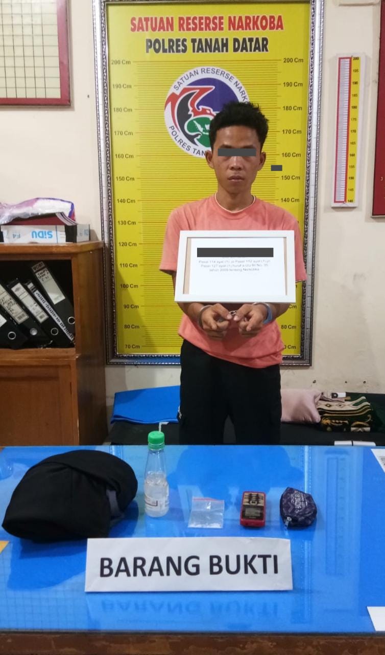 Berkat kerjasama dengan masyarakat setempat Sat Res Narkoba dibawah pimpinan AKP Yadi Purnama, SH berhasil menangkap terduga DP Sabtu (26/03) pukul 14.00 Wib sedang berada dipinggir jalan Jorong Tiga Batur.