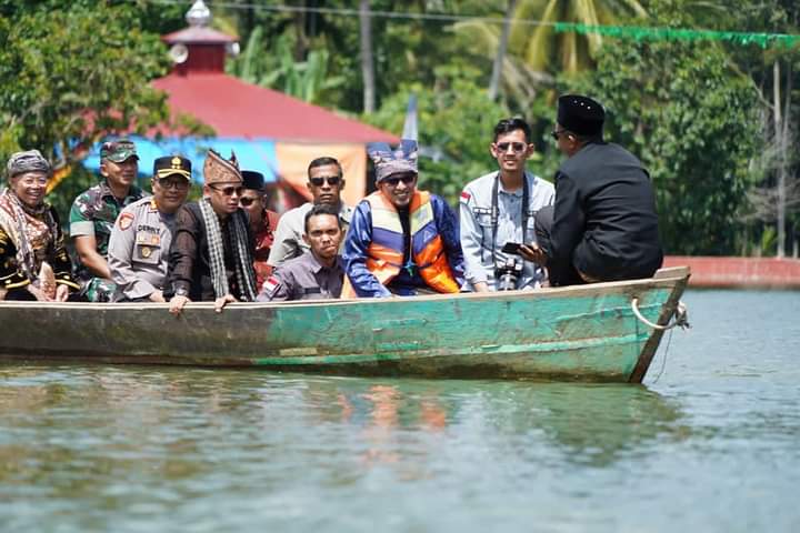 Bupati Tanah Datar Eka Putra diatas Selaju Sampan.(Foto : M.Syukur).
