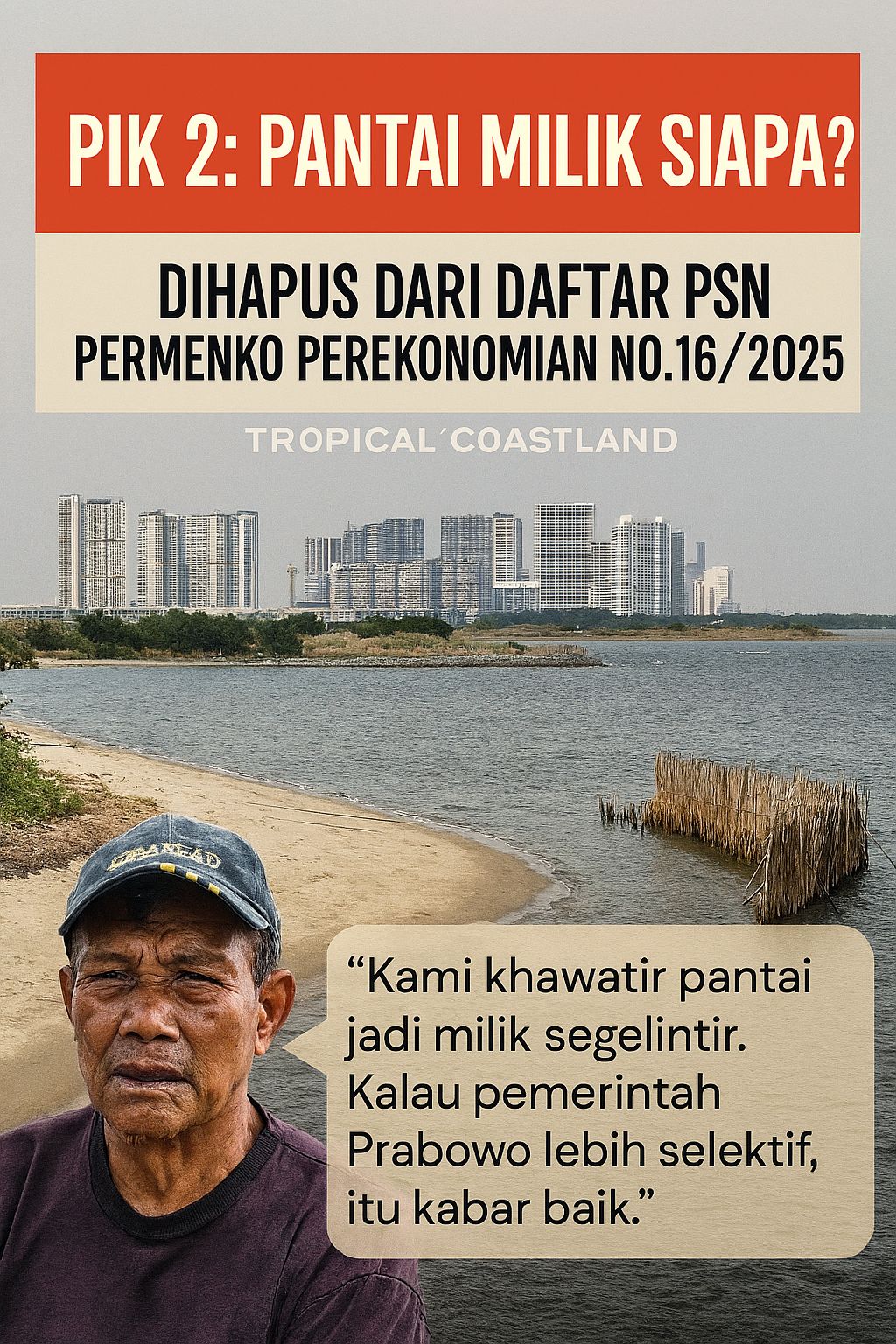 PIK 2 dicoret dari PSN: megaproyek pesisir ditinjau ulang, arah pembangunan nasional bergeser (Potret Digital: DRJ/44d1n0/AI).