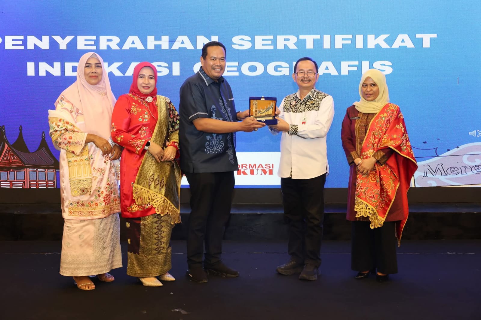 Pariaman (Sumbar). MINAKONEWS.COM – Pemerintah Kota Pariaman menerima Sertifikat Indikasi Geografis (IG) untuk produk unggulan Sulaman Kapalo Paniti Nareh. Sertifikat diserahkan oleh Kepala Kantor Wilayah Kementerian Hukum Sumbar, Alpius Sarumaha, kepada Wali Kota Pariaman, Yota Balad, yang didampingi Ketua Dekranasda Kota Pariaman, Ny. Yosneli Balad, di Aula Hotel Pangeran Padang, Jumat (5/12).