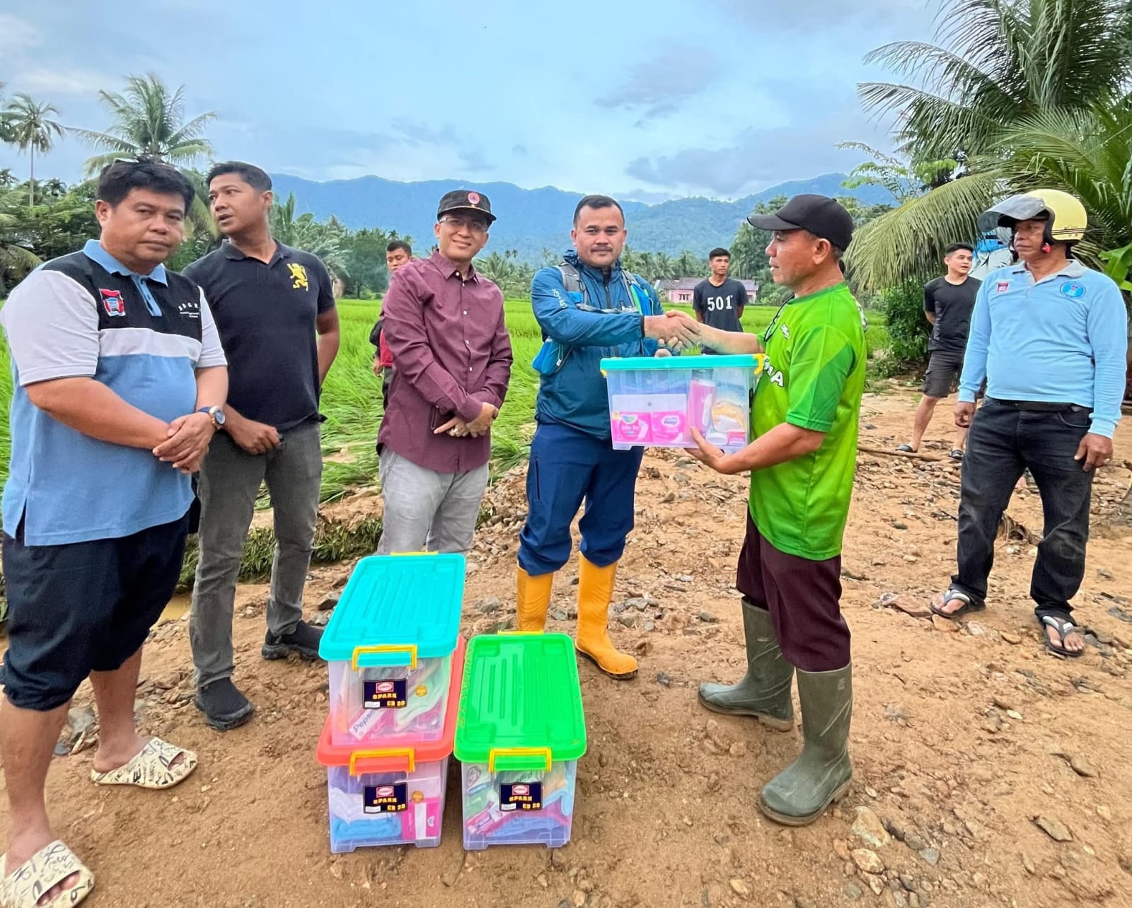 Petugas menyerahkan bantuan darurat kepada warga terdampak banjir di Kuranji, Padang, sebagai bagian dari respons cepat Pemko Padang pasca tanggul jebol.(Foto Dok. Diskominfo).