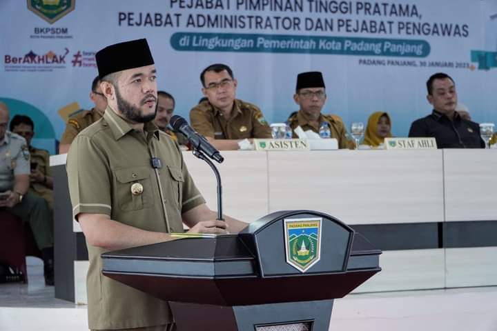 Padsng Panjang (Sumbar), MINAKONEES.COM – Wali Kota, H. Fadly Amran, BBA Datuak Paduko Malano melantik sebanyak 35 pejabat baru yang terdiri dari Pejabat Tinggi Pimpinan Pratama, Pejabat Administrator dan Pejabat Pengawas di Hall Lantai III Balai Kota Senin (30/01).