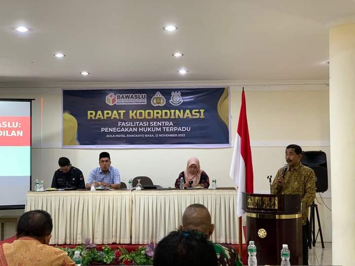 Padang panjang (Sumbar), MINAKONEWS.COM – Guna mewujudkan proses pemilu yang aman, damai dan berintegritas, Bawaslu Kota Padang Panjang menggelar Rapat Koordinasi Sentra Penegakan Hukum Terpadu (Sentra Gakkumdu) di Aula Hotel Rangkayo Basa, Sabtu (12/11).