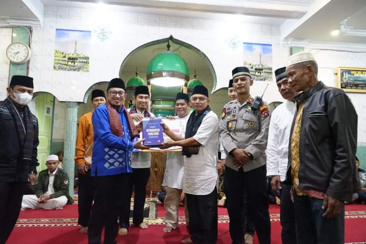 Saat itu, Bupati Eka Putra juga menyerahkan bantuan untuk pembangunan masjid Falah senilai 10 juta rupiah ditambah dengan satu paket buku fiqih. (MSR)