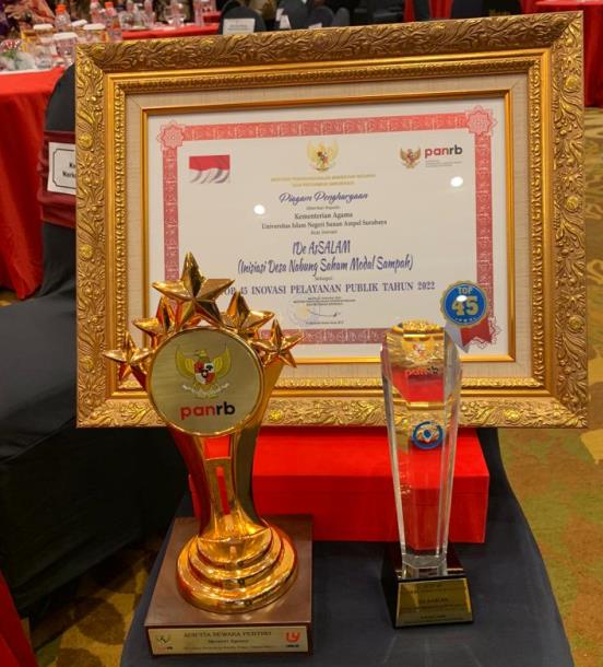 Layanan Publik di UINSA yang telah berhasil menyabet juara TOP 45 tersebut adalah IDe AsSALAM (Inisiasi Desa Nabung Saham Modal Sampah) yang telah dikelola Laboratorium Fakultas Ekonomi dan Bisnis Islam (FEBI) UINSA Surabaya.