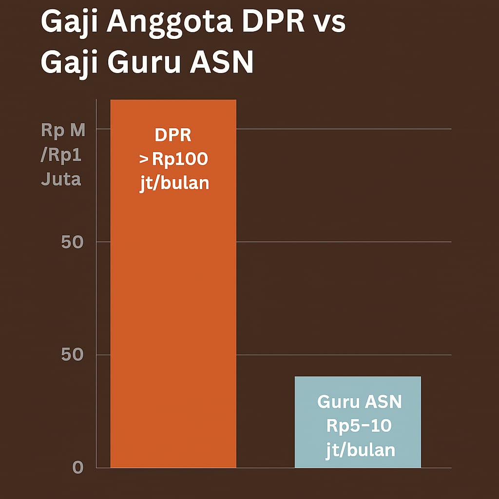 Kesenjangan nyata: gaji DPR tembus Rp100 juta, guru ASN baru Rp8–10 juta per bulan (WD/AI).