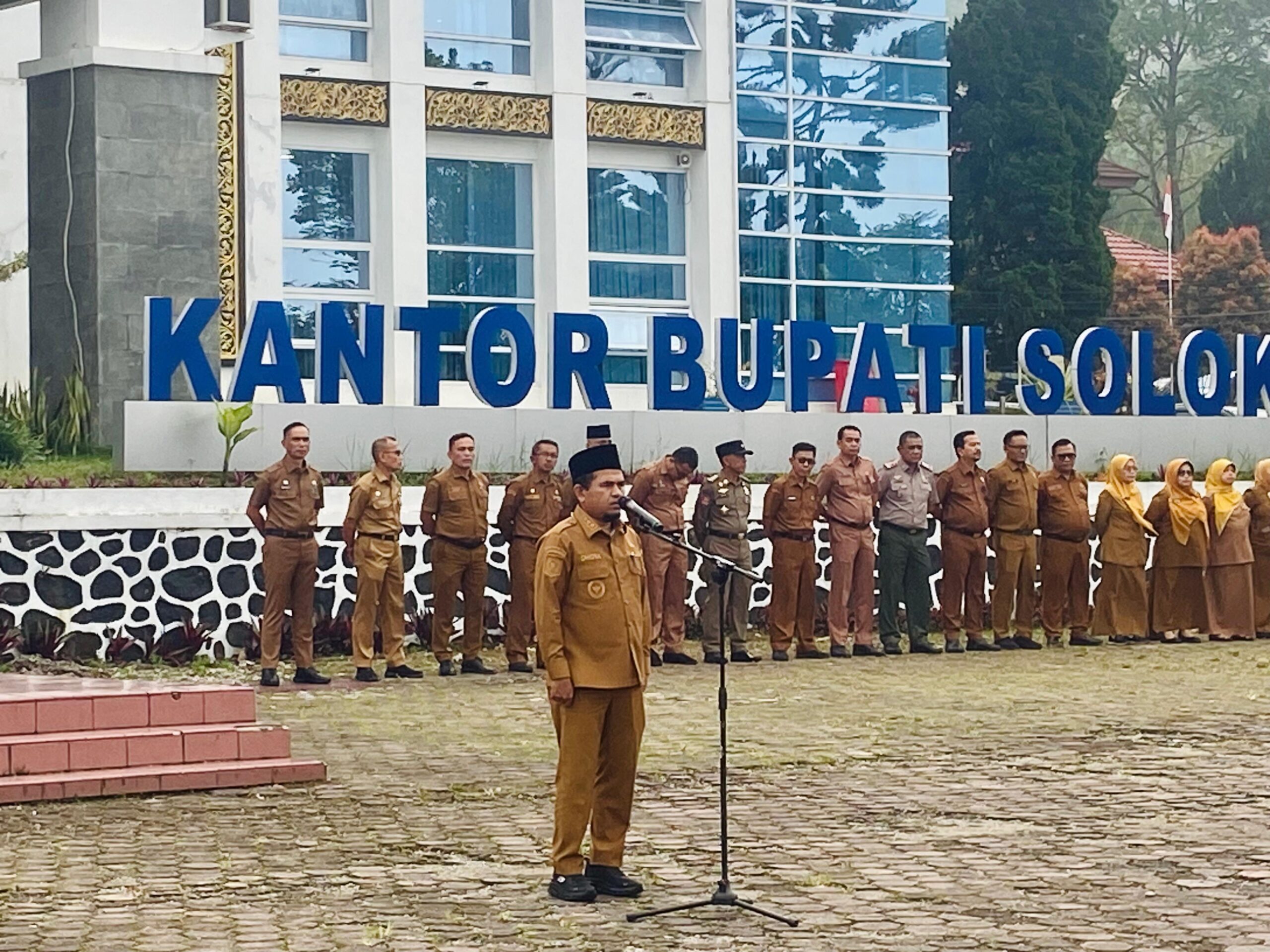 Wakil Bupati Solok, H. Candra, S.H.I., memimpin apel pagi di lingkungan Pemerintah Kabupaten Solok.(Foto : Eli).