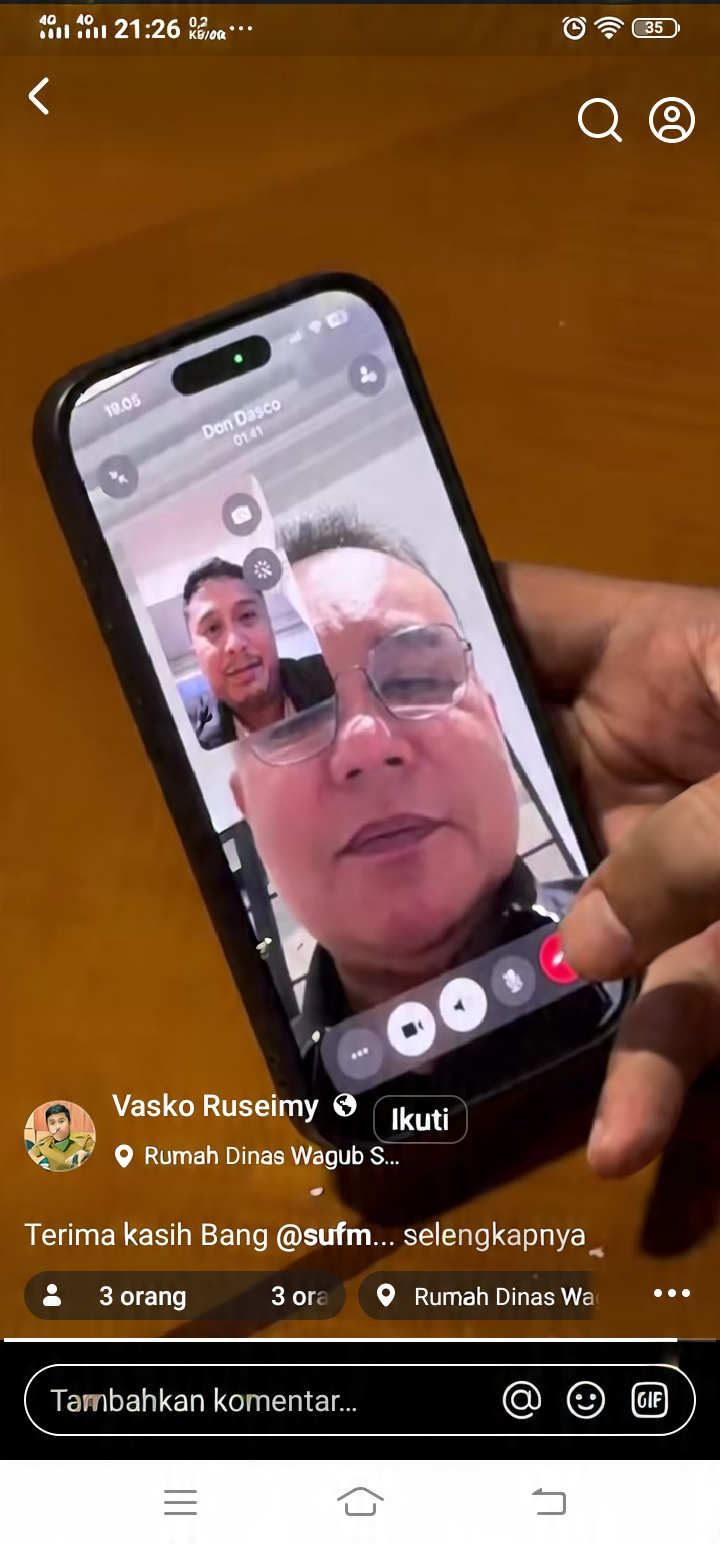 Wagub Sumbar videocall dengan Wakil Ketua DPR RI Sufmi Dasco Ahmad bahas pemulihan pascabencana dan TKD 2026.(Foto Dok. Vasko Ruseimy).