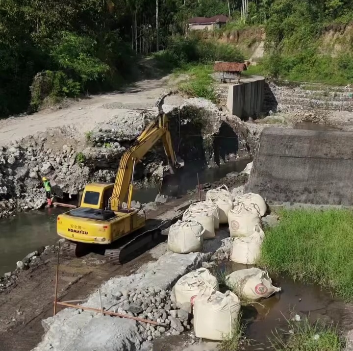 Pembangunan jembatan sepanjang ±120 meter ini menghubungkan ruas utama Sicincin–Kayu Tanam dan didanai melalui APBD serta dana pusat dengan total anggaran sebesar Rp 38,5 miliar. Per awal November, progres fisik baru mencapai 42 persen dari target 60 persen pada triwulan IV. Pemerintah menargetkan penyelesaian konstruksi pada Juni 2026 dengan sistem kerja bergilir 24 jam.
