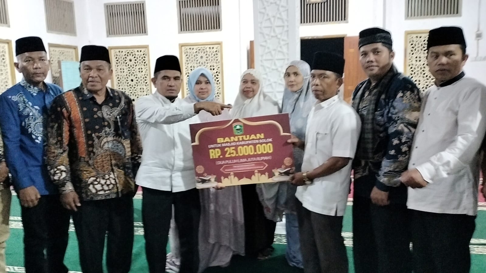 Kegiatan Safari Ramadhan tersebut ditutup dengan penyerahan secara dimbolis bantuan pemerintah daerah kabupaten solok untuk masjid Nurul Iman Bancah Laweh sebesar Rp. 25.000.000,- serta apresiasi untuk jamaah lansia dalam kelompok jamaah 40 hari. (Eli).
