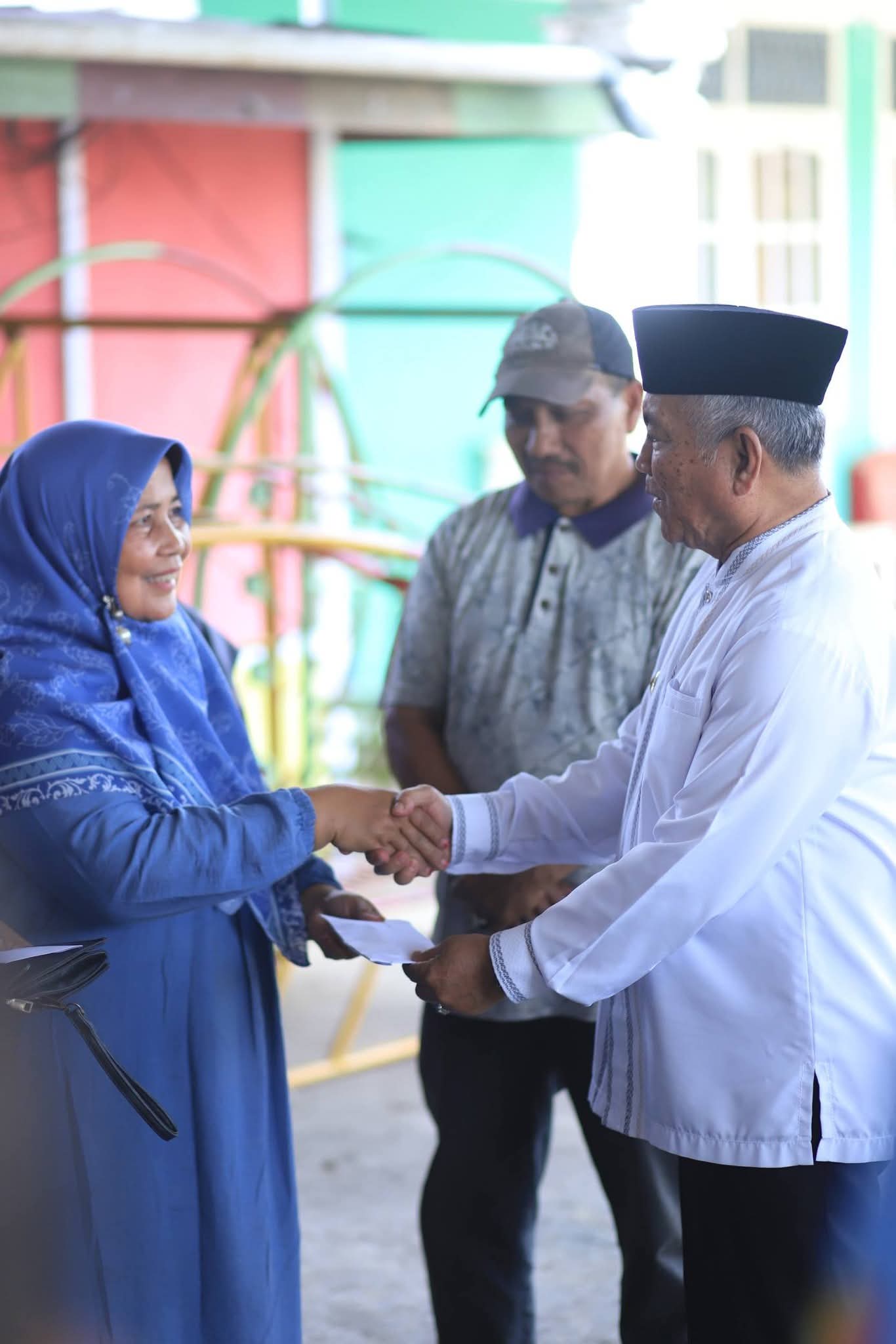 Wakil Wali Kota Solok, H. Suryadi Nurdal, menyerahkan langsung bantuan kepada warga terdampak bencana kebakaran di Kelurahan Simpang Rumbio.(Foto : Eli).