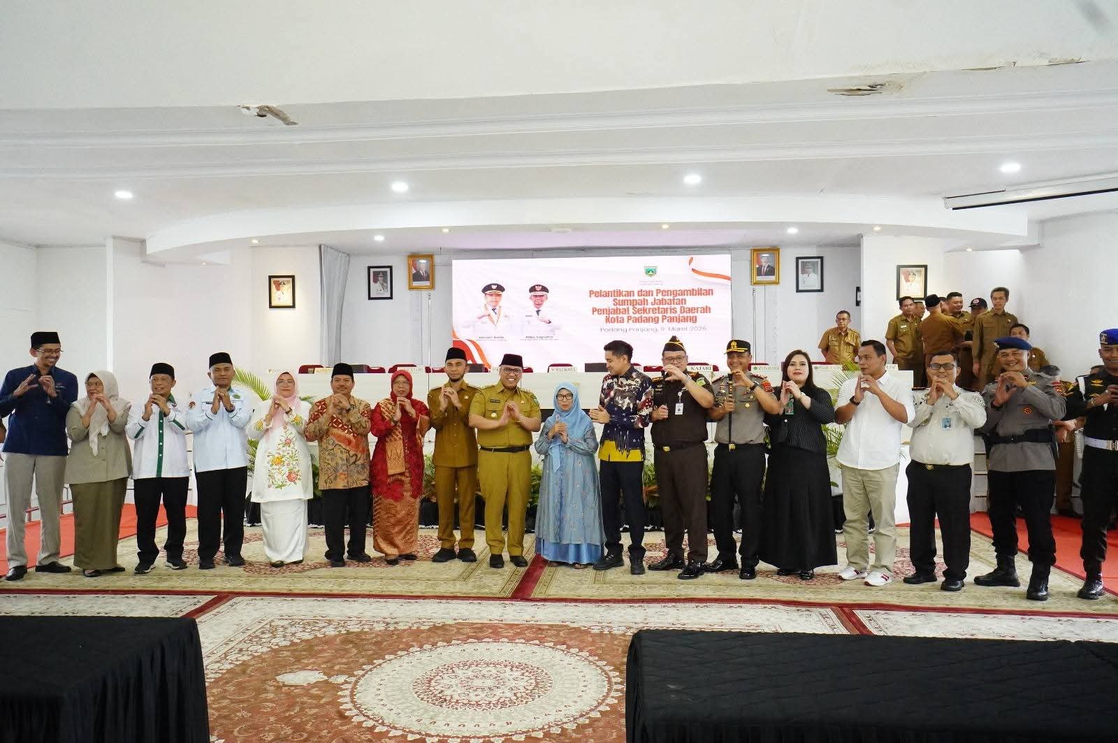 Padang Panjang (ASumbar), MINAKONEWS.COM — Wali Kota Hendri Arnis melantik dan mengambil sumpah jabatan Wita Desi Susanti sebagai Penjabat (Pj) Sekretaris Daerah Kota (Sekdako) Padang Panjang, Senin (9/3/2026) di Hall Lantai III Balai Kota.