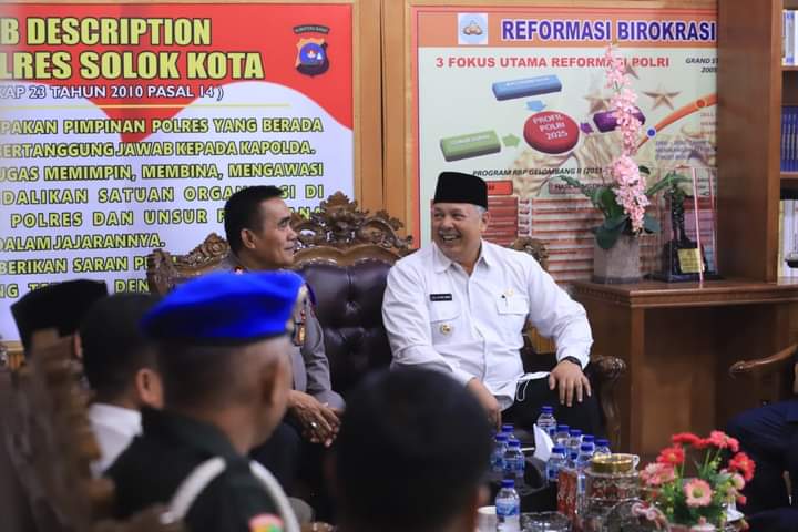 Wali Kota Solok, Zul Elfian Umar dan Forkopimda Kota Solok saat menghadiri apel gelar pasukan di Polres Solok Kota.( Foto : Eli )