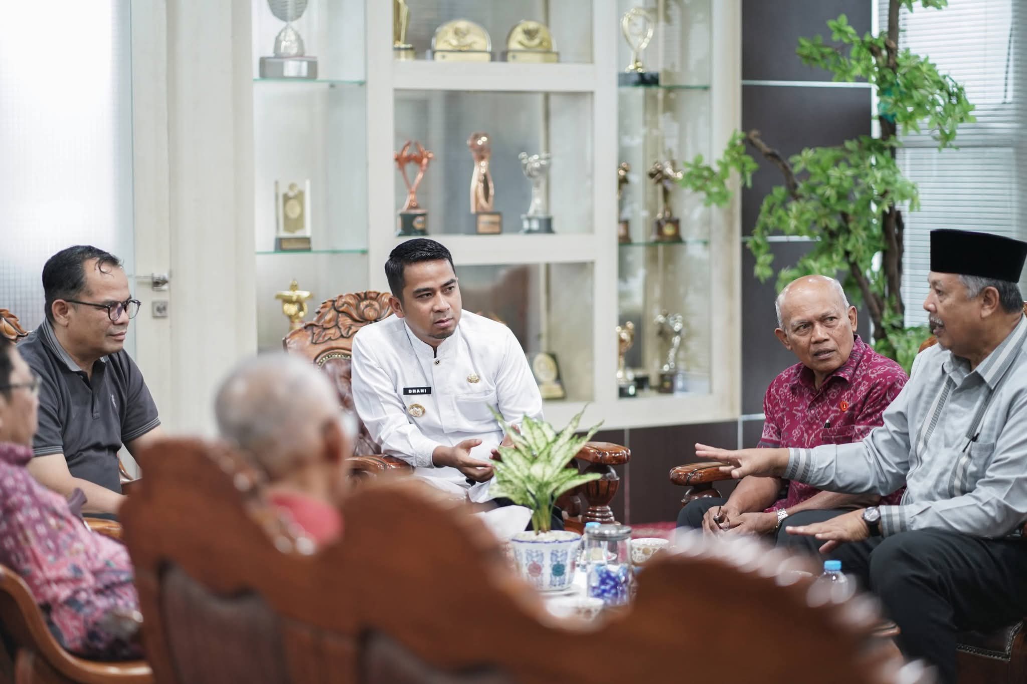 Wali Kota Solok, Dr. H. Ramadhani Kirana Putra, SE, MM, menerima kunjungan konsultasi Badan Pembina Yayasan Mahaputra Muhammad Yamin di ruang kerja Wali Kota Solok, baru-baru ini.(Foto : Eli)