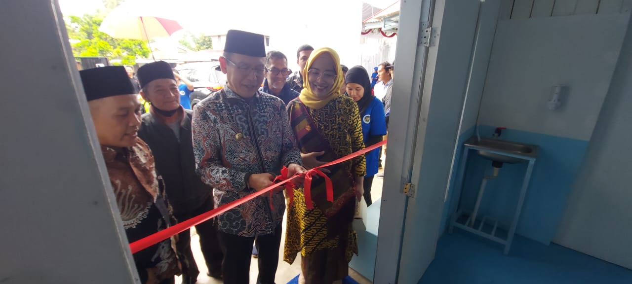 Walikota Payakumbuh Zulmaeta didampingi Ketua TP-PKK Eni Muis Zulmaeta ditandai dengan pengguntingan pita pertanda telah resminya Dapur MBG di Kelurahan Padang Tinggi Kecamatan Payakumbuh Barat.(Foto :Herym).