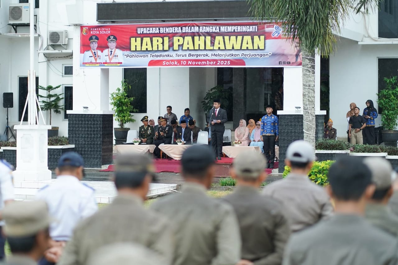 Kota Solok (Sumbar), MINAKONEWS.COM – Wali Kota Solok, Dr. H. Ramadhani Kirana Putra, SE, MM, bertindak sebagai inspektur upacara pada peringatan Hari Pahlawan Nasional 2025 di Halaman Balai Kota Solok, Senin (10/11/2025).