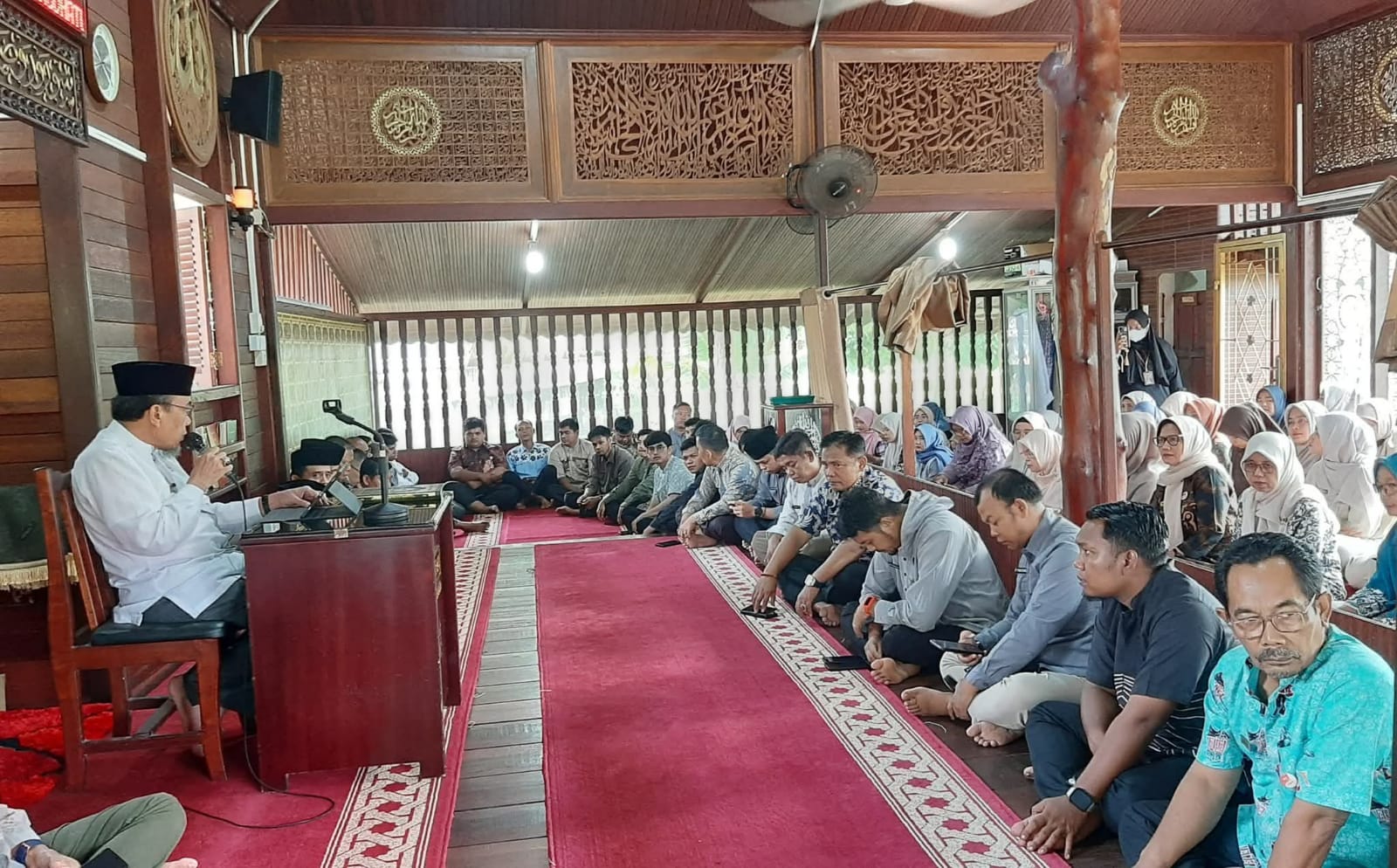 Wakil Wali Kota Padang Maigus Nasir menyampaikan tausyiah bertema “Peran Orang Tua dalam Pendidikan Anak” di Surau Dinas Pertanian Kota Padang, Jumat 27 Februari 2026. (Foto Dok. Diskominfo).