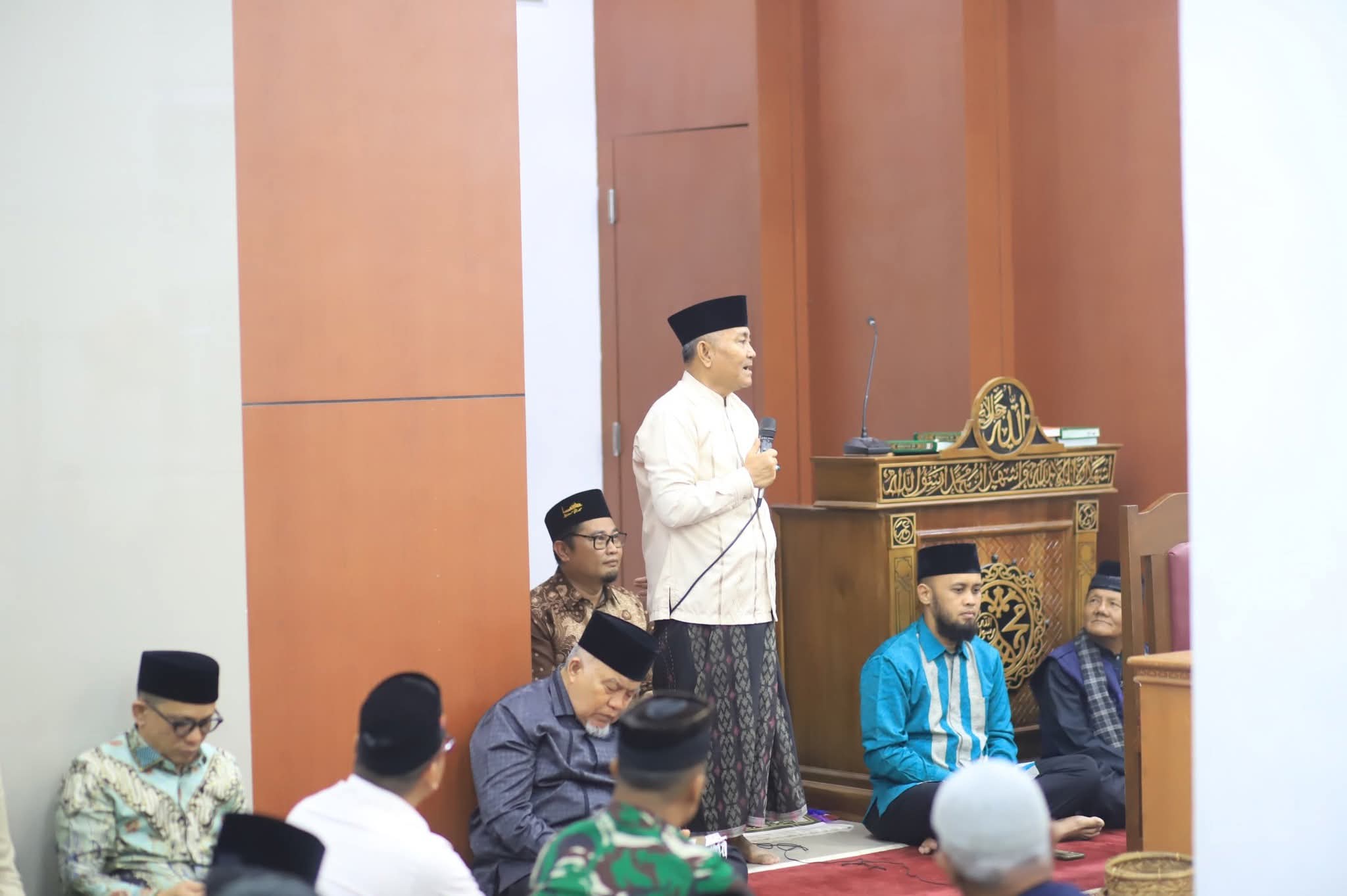 Kota Solok (Sumbar), MINAKONEWS.COM – Wakil Wali Kota Solok, H.Suryadi Nurdal mengikuti kegiatan Tausiyah dan Do’a Bersama Forkopimda dan elemen masyarakat Kota Solok di Masjid Nurul Hidayah, Banda Panduang, Kelurahan Tanah Garam, Senin (20/10/25).