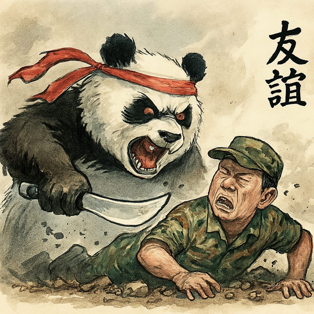 Satir insiden Ketapang: ‘Panda ngamuk, aparat mundur.(Ilustrasi: DM/AI).
